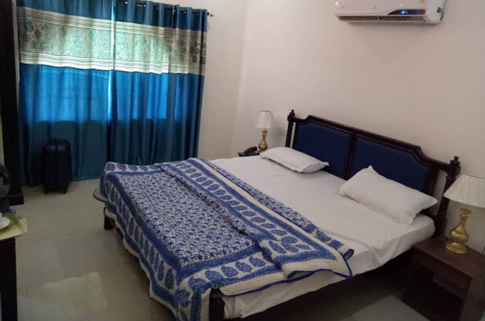Rampura Kothi’s deluxe room offers a blend of comfort and elegance, ideal for a relaxing stay in Jaipur. The room features a cozy double bed, air conditioning, a satellite flat-screen TV, and modern furnishings. With warm lighting, fresh linens, a private bathroom, and access to free Wi-Fi, guests enjoy a peaceful, homely atmosphere with attentive service.